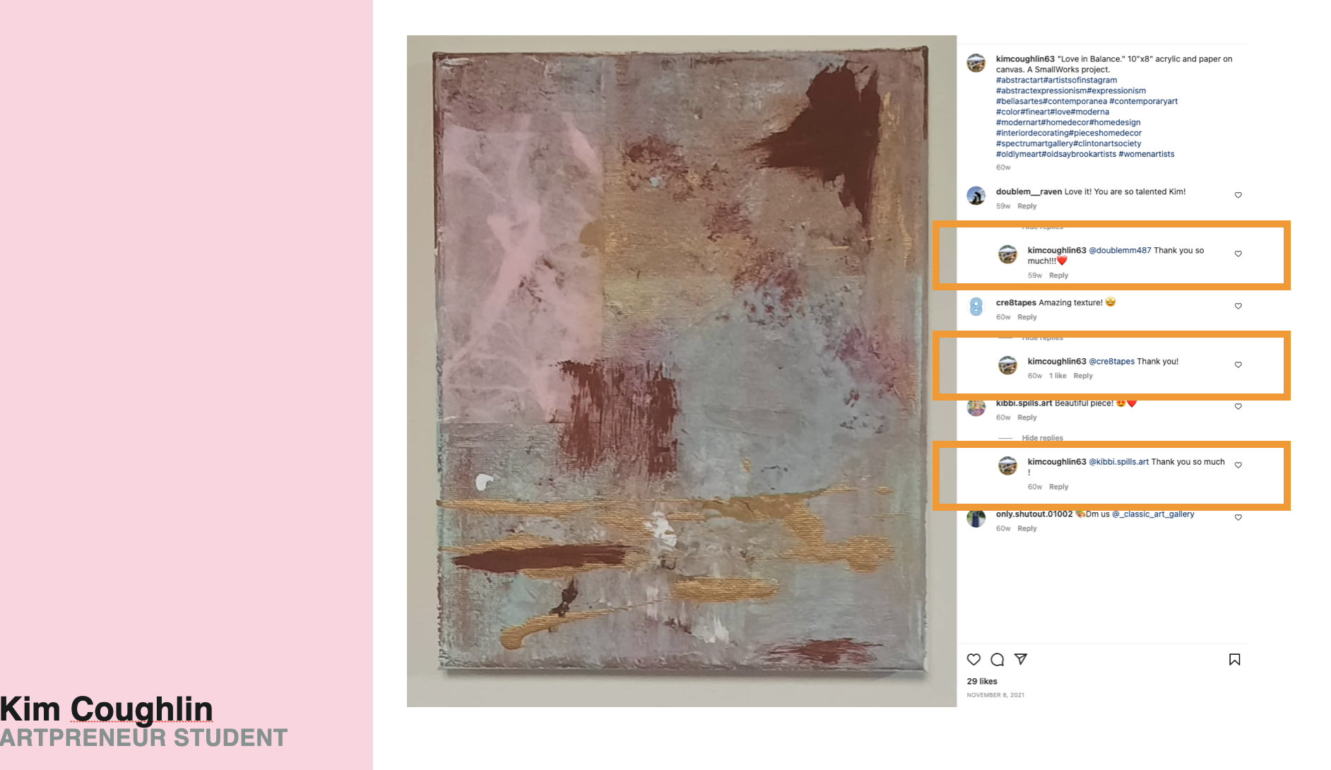 "The art sales script was very helpful. I sold three paintings, one was very large. I also sold a bunch of notecards and postcards and have been commissioned to make notecards for the holidays. I used the sales script to close these sales!” - Kim C.